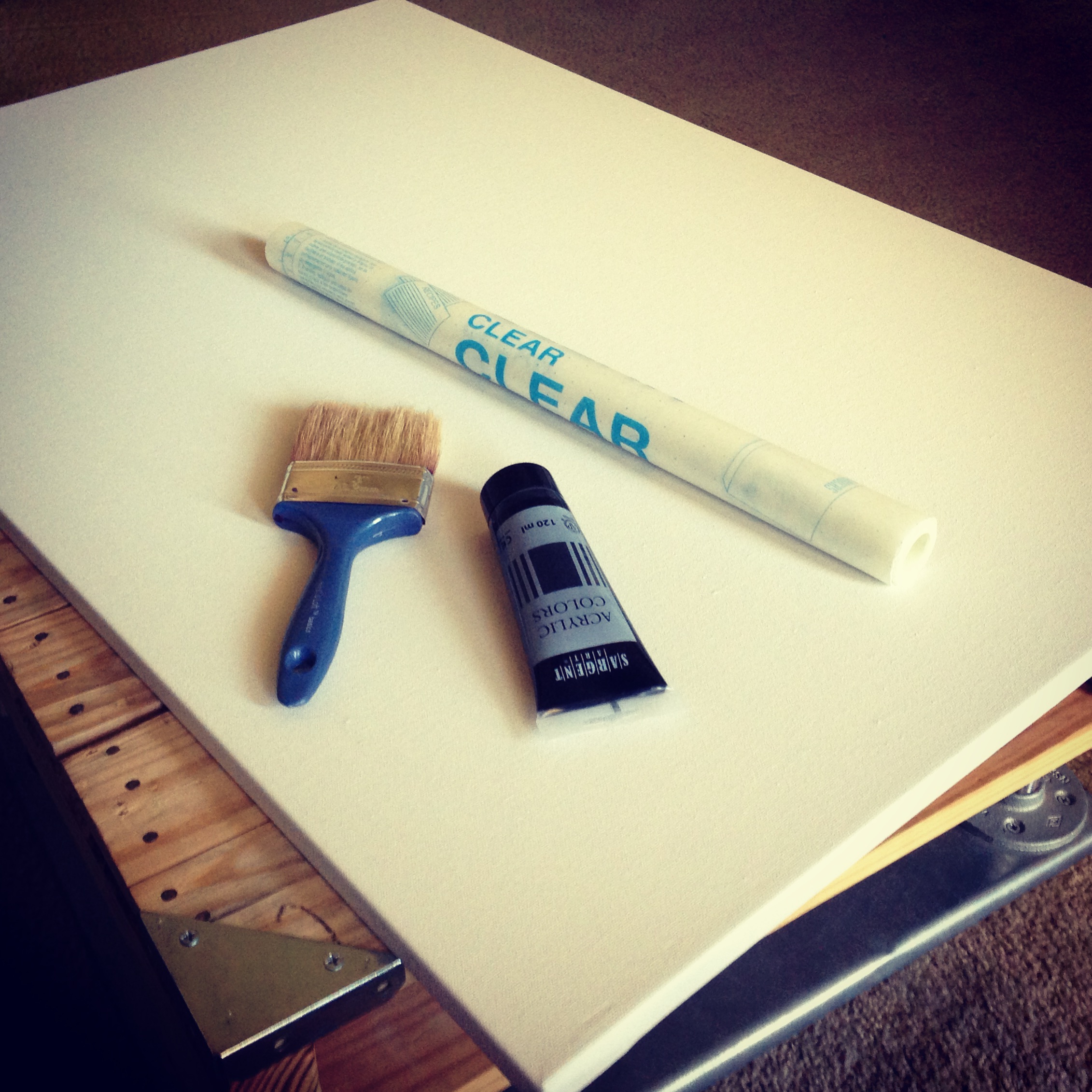 Contact paper isn’t super sticky, which makes it perfect for this project, it won’t leave behind sticky residue! Keep your design pressed flat, place magazines over design to keep edges from pulling away from the canvas.