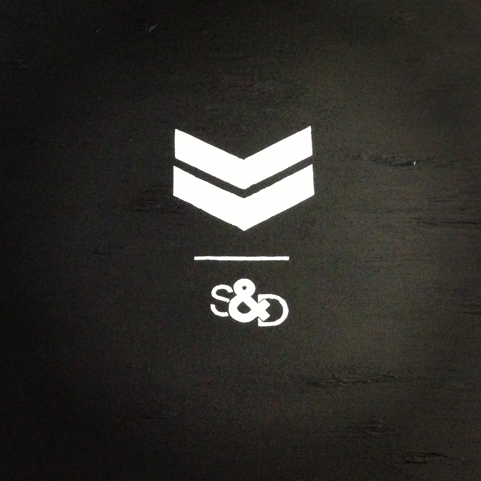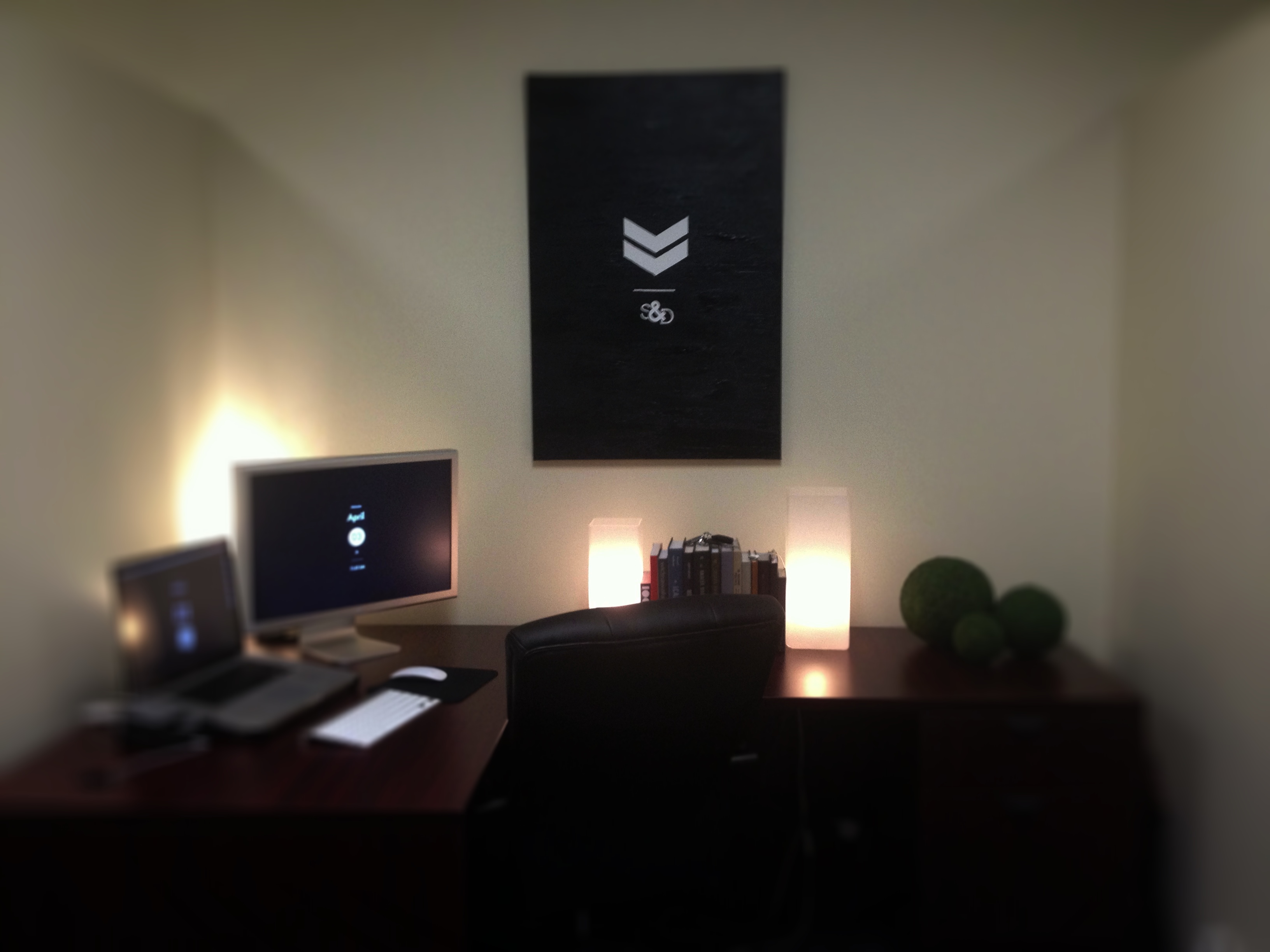 I used this method last year to create a piece of artwork for our bedroom, which featured several lines of text and deep colors. This newest piece has a more simple, bold design. Drew had requested a unique art piece for his office and he designed the graphics that I used to create it. It’s a combination of chevron and our initials. I love it!