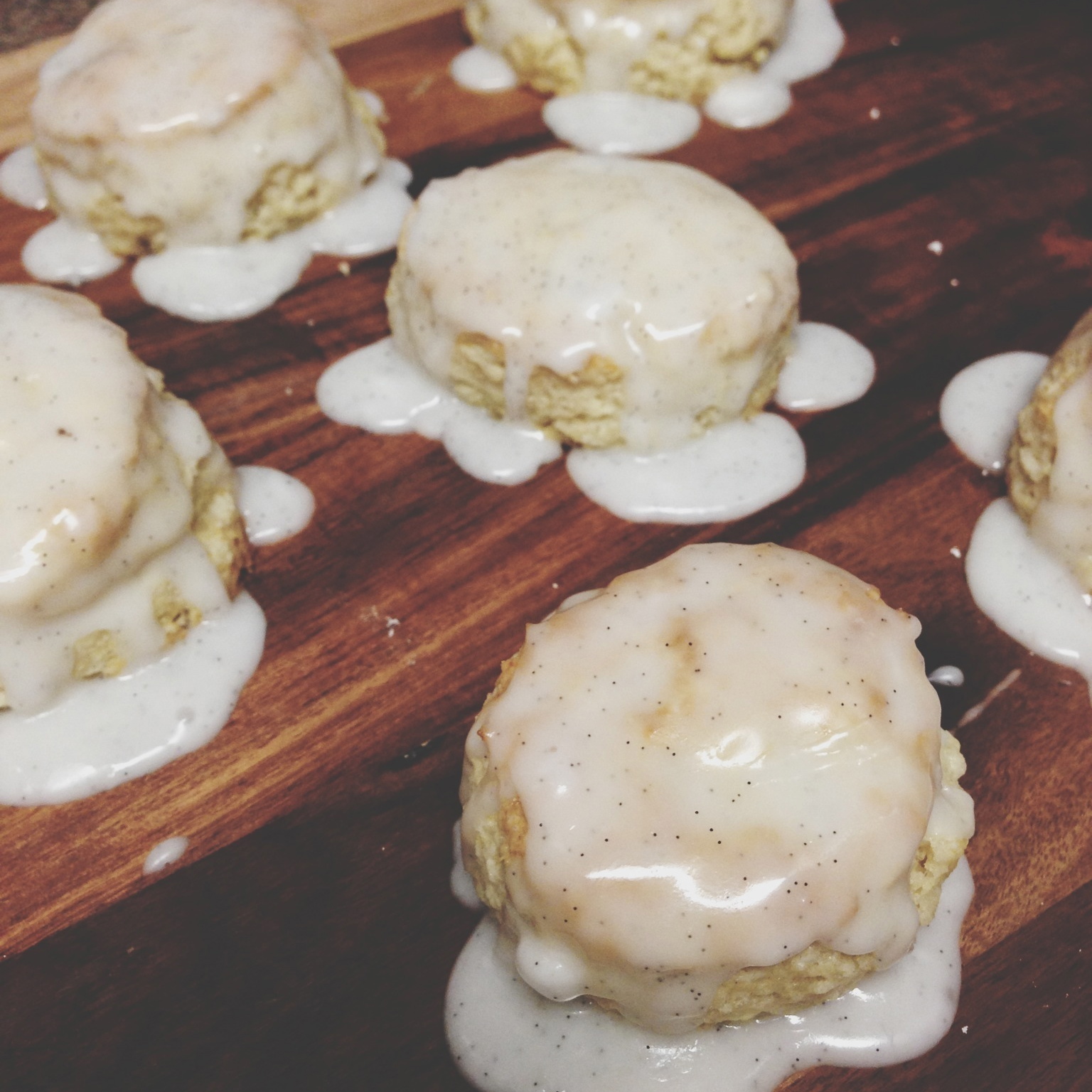 3. I made these last night and they were delicious with tea. I only had whole wheat flour and that was fine, but it was harder to tell when they were golden brown. The best scones I’ve ever had. Loved the speckles of vanilla in the glaze.
