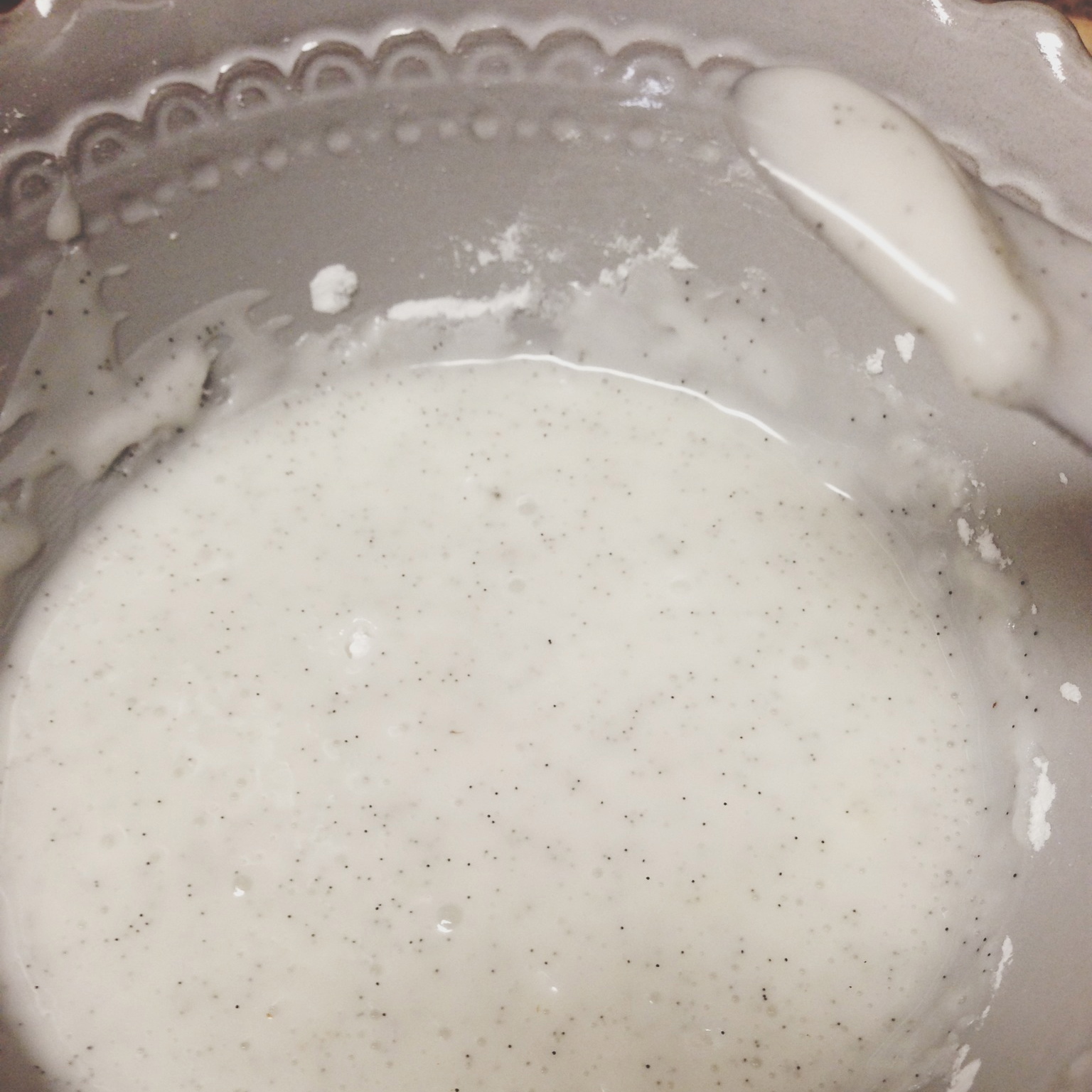 In a bowl, add powdered sugar, corn syrup, and vanilla beans. Stir together and add water, a little at a time, until you have a smooth glaze.
