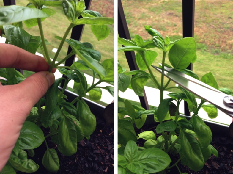 I’ve done a little research on how to harvest basil and this is what I’m trying for now// Find spots where a branch grows off in three directions, harvest the middle section. Last year I cut my plants at random and they struggled to grow back. I’m using this method this season, and my plants are still growing full.