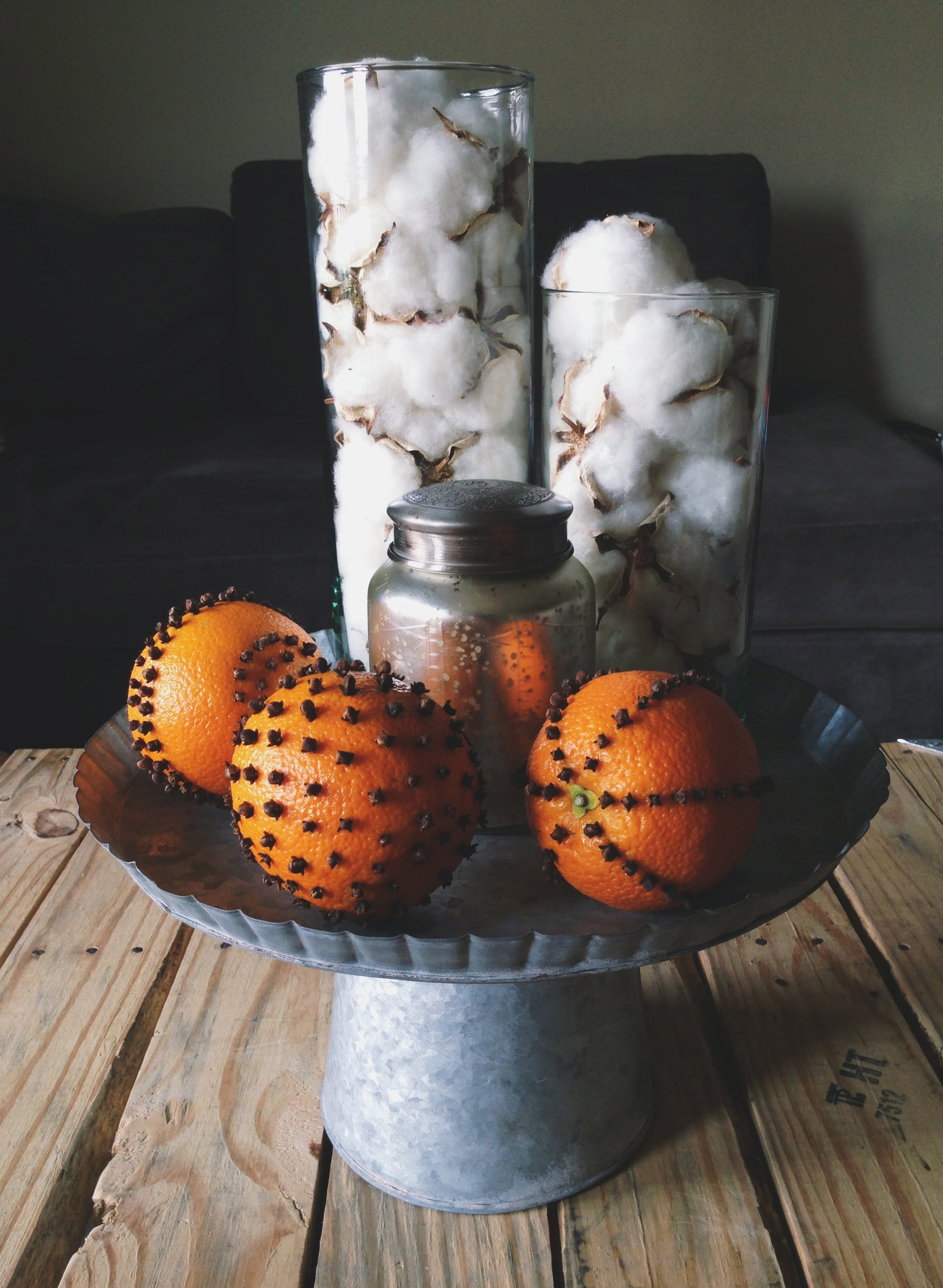 I love using natural items like coffee beans, cotton, and orange clove pomanders for Autumn and Winter decorating! What do you like to add to your table centerpieces?