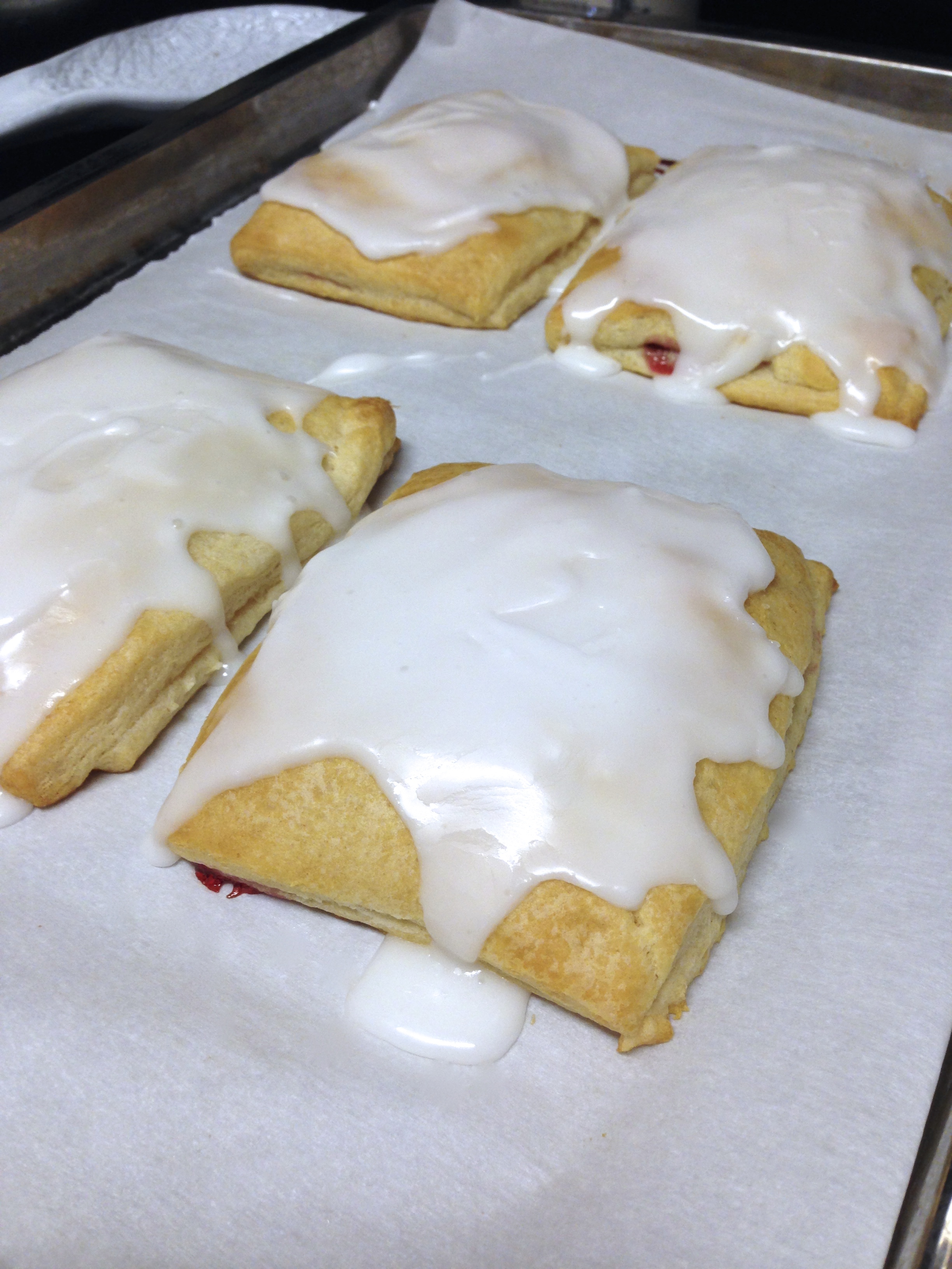 Let pastries cool for a minute or two, after coming out of the oven, before topping them with glaze. Serve right away!