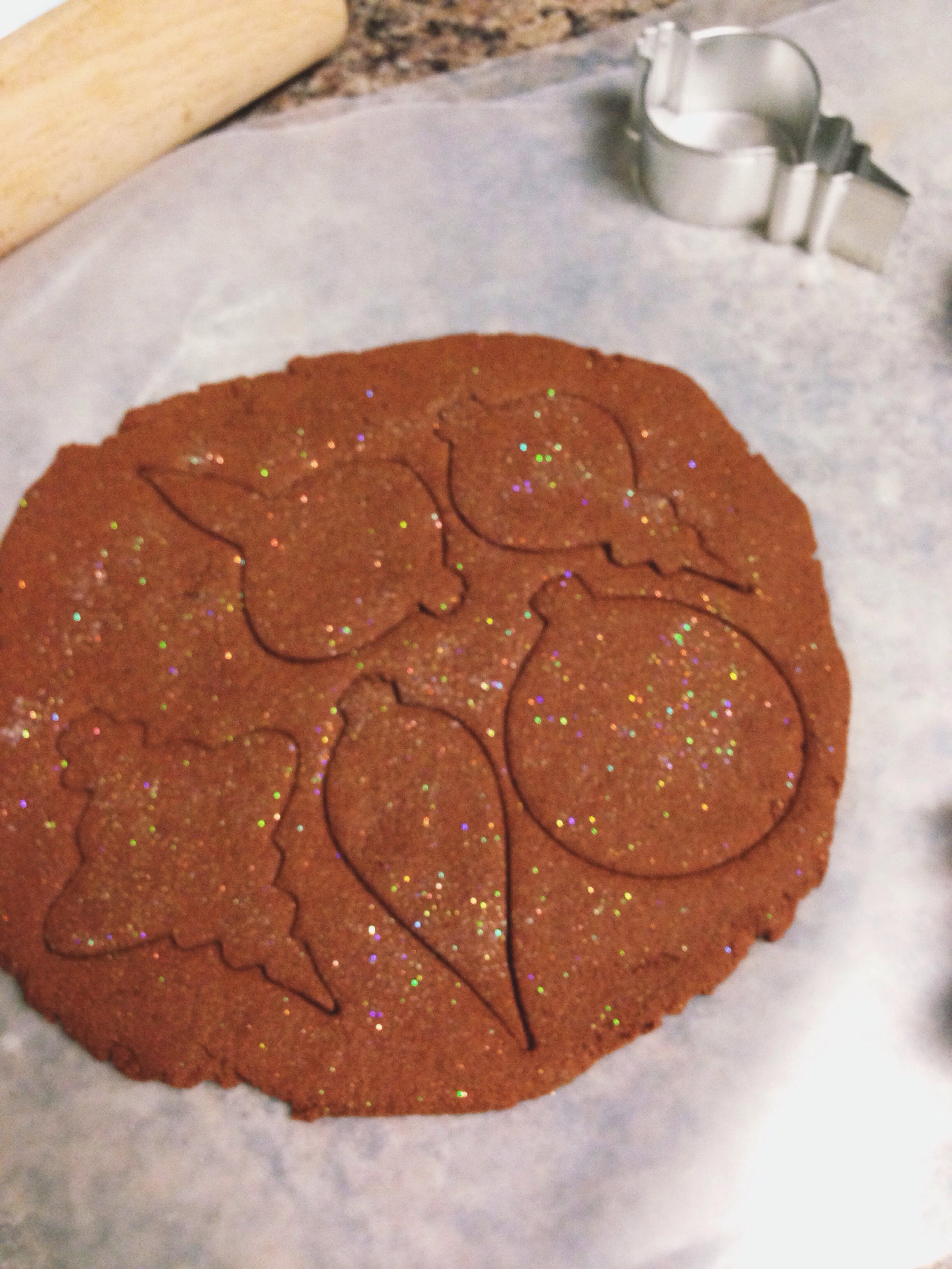 The classic cinnamon ornament recipe is so simple, just two ingredients. This year I decided to change it up a little bit by adding glitter. I used very fine, colorless, shimmer glitter to give these ornaments some sparkle. I had a bit of hard time getting the shimmer to show up in my photos, but they’re really so pretty!