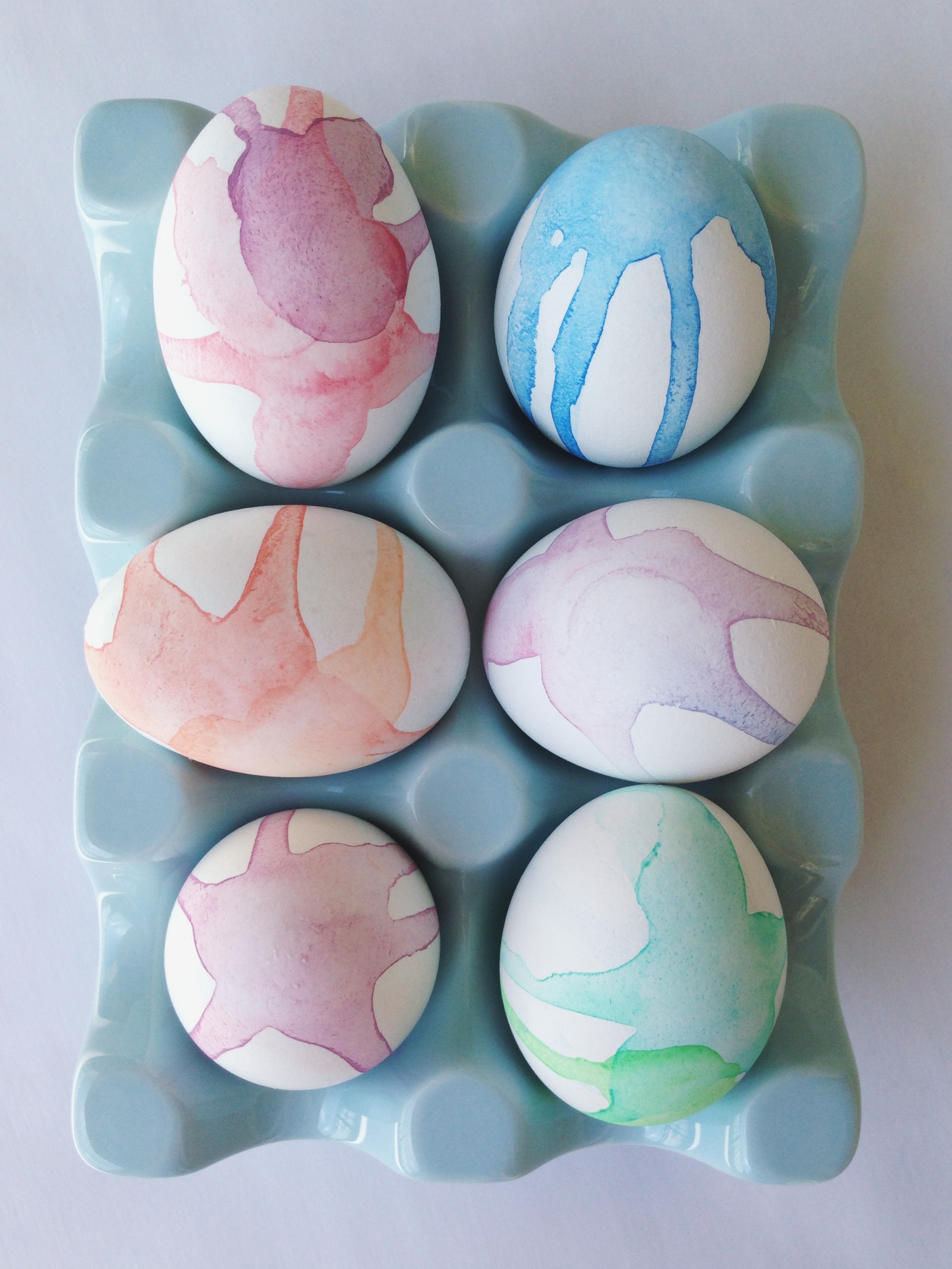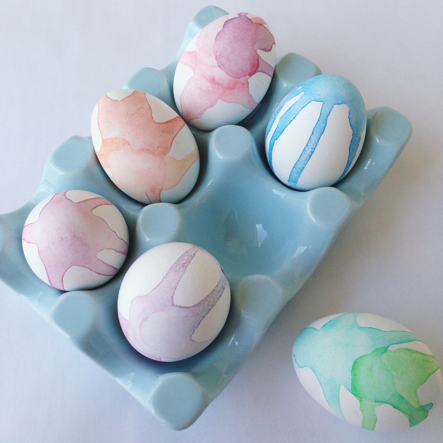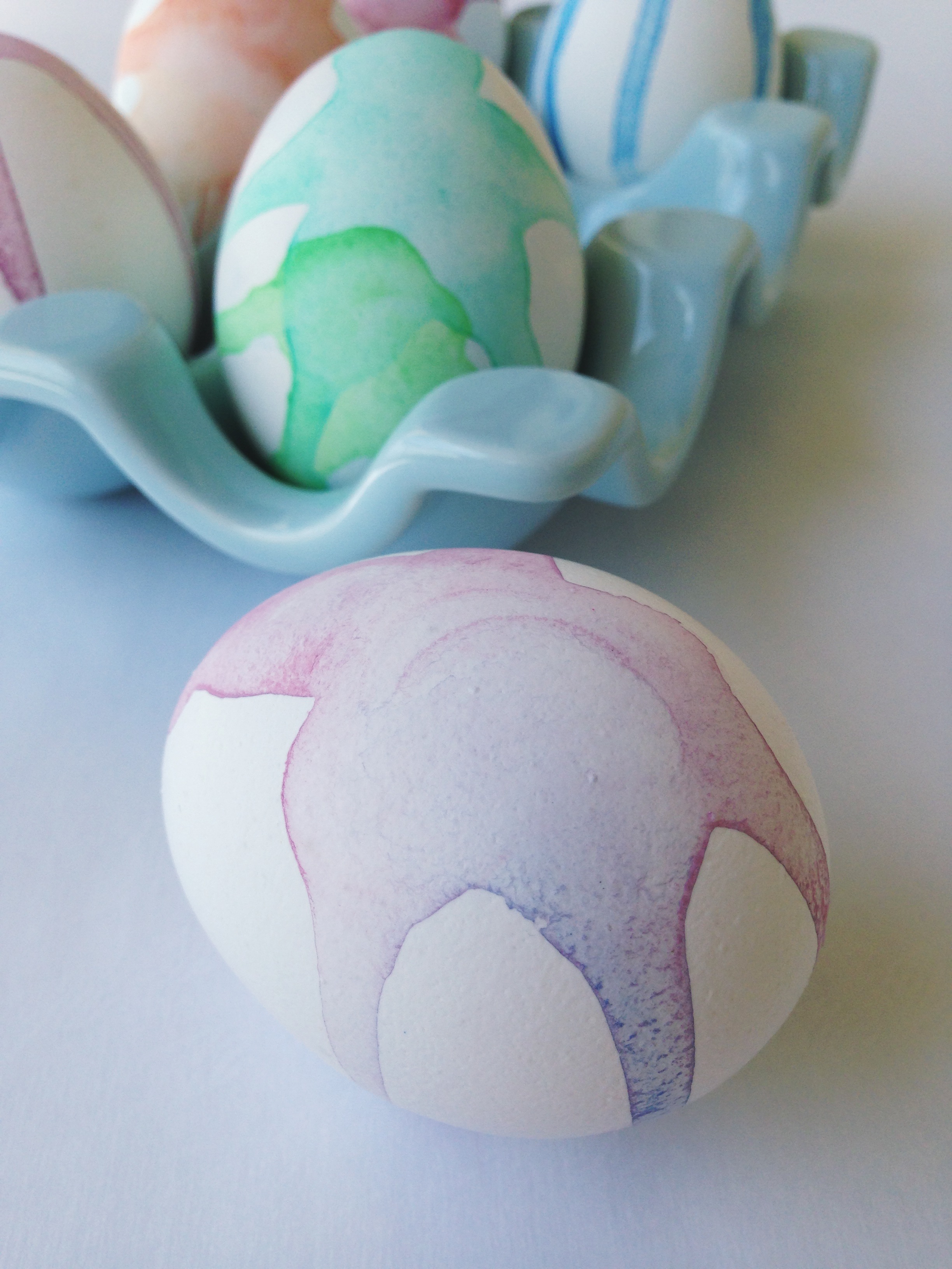 Last year I created these Patterned Easter Eggs using white paint pens on brown eggs. I really wanted to come up with another unique and artsy egg decorating idea this year. I had just purchased a set of watercolor paint (I’m currently in love with simple watercolor designs!) and was inspired to try watercolor egg decorating.